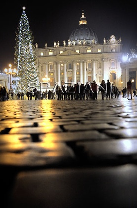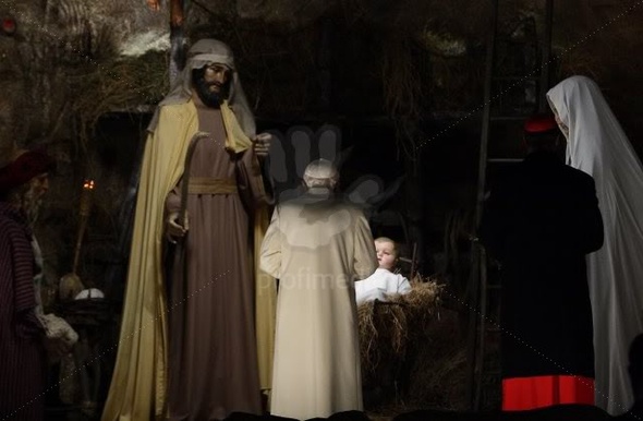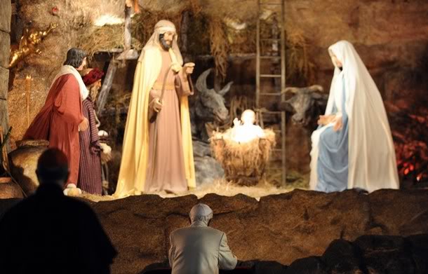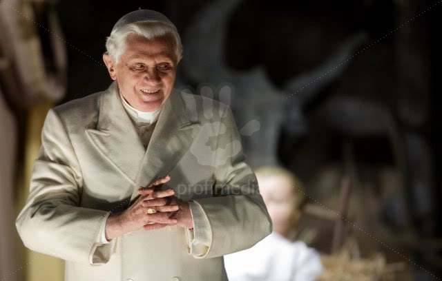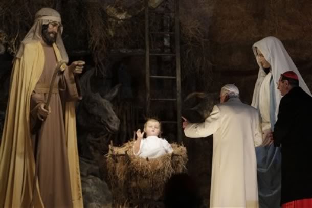 Il Papa Benedetto celebra la messa e visita presepe sulla piazza San Pietro