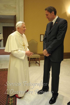 Al termine dell’udienza generale, Benedetto XVI ha ricevuto, nell’Auletta dell’Aula Paolo VI, Ranko Krivokapić, presidente del Parlamento di Montenegro, accompagnato da un seguito