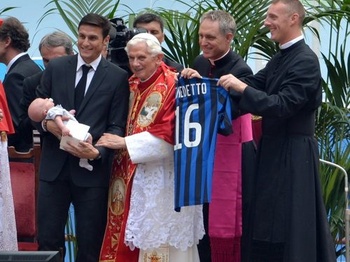 Вселенский пастырь и тонкий знаток футбола, Бенедикт XVI не может себе позволить быть яростным болельщиком. Папа, об этом знает весь Ватикан, следит у телеэкрана за наиболее важными матчами, но не делится с журналистами своими впечатлениями, комментариями и надеждами. За кого же болеет Папа?