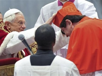 И снова Бенедикт XVI всех удивил. Известный как «любитель итальянцев», назначавший их стабильно и помногу: почти треть всех его кардиналов – пиццееды, на сей раз Папа "забыл" целиком всю Европу. Кардиналами станут араб, индус, негр, колумбиец, филиппинец и американец. Если бы Джеймс Харви (США) не испортил статистику, то получилась бы довольно маргинальная компания. Между тем, ясно, что выбор Папы не случаен. В очереди на кардинальский титул стоят весьма серьезные особы. Накануне консистории образуется стихийный тотализатор и аналитики наперебой называют самые вероятные имена. И никого из них Бенедикт XVI не выбрал. Он даже обошел назначением своих протеже: немецкого архиепископа Мюллера (Конгрегация Доктрины Веры) и арх. Моралью (патриарх Венеции).