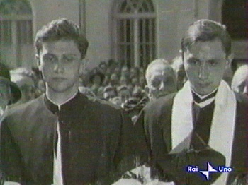 ЛЭППЛЕ: «В тот радостный день, – пишет он мне, вспоминая ту прогулку, – я понял гораздо больше чем раньше, что означает быть священником Иисуса Христа в Его Церкви. Ты сам тогда сказал мне, как ты взволнован тем, что можешь произносить слова Самого Иисуса для пресуществления хлеба и вина, даруя Ему свой голос, свое слово, само свое бытие». Я попросил Ратцингера быть рядом со мной на моей первой мессе, которую я служил в Partenkirchen, в родных мне местах. Йозеф был для меня в тот день церемониймейстером.