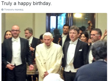 "Изумительный концерт для Папы эм. Бенедикта XVI. Его брат присутствовал. Оба выглядят отлично. Реально счастливый день рождения".