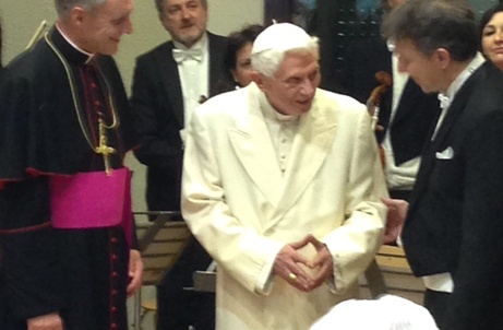 Римский Папа Бенедикт XVI побывал на концерте классической музыки, который был устроен в его честь. Об этом сообщил в своем аккаунте в твиттере священник Флориан Колфхаус (Florian Kolfhaus), работающий в Ватикане. В 18 часов по римскому времени в "Зале Вознесения" Филармонический оркестр Franciacorta играл Моцарта.
