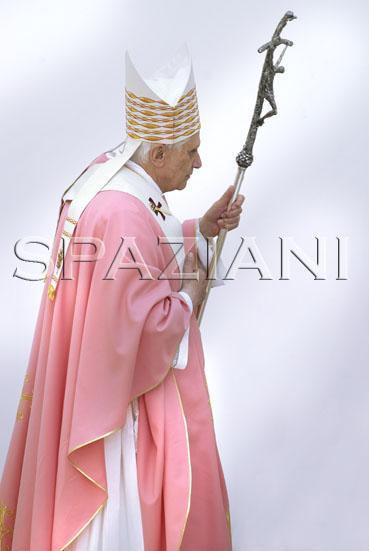 Об этом подтвердил нам – во втором чтении – апостол Павел, напомнив, что «Бог, богатый милостью, по Своей великой любви, которою возлюбил нас, и нас, мертвых по преступлениям, оживотворил со Христом» (Еф 2,4-5). Для выражения этой реальности спасения, наряду со словом «милость», eleos, апостол использует слово «любовь», agape, которое вновь появляется и получает дальнейшее толкование на прозвучавшей сегодня евангельской странице: «Так возлюбил Бог мир, что отдал Сына Своего Единородного, дабы всякий, верующий в Него, не погиб, но имел жизнь вечную» (Ин 3,16). Мы знаем, что это «отдание» со стороны Отца имело драматическое развитие: оно привело к жертве Сына на кресте. Если вся историческая миссия Иисуса является красноречивым знаком любви Бога, то Его смерть, в которой полностью выразилась искупительная нежность Бога – это совершенно особый знак Его любви. Всегда, но особенно в это великопостное время, в центре наших размышлений должен, следовательно, стоять Крест; в нем мы созерцаем славу Господа, сияющую в истерзанном теле Иисуса. Именно славу Распятого призван понять, пережить и свидетельствовать своей жизнью каждый христианин. Крест в конечном счете – это в полном смысле слова «знамение», данное нам для того, чтобы понять истину человека и истину Бога: все мы были сотворены и искуплены единым Богом, Который ради любви принес в жертву Своего единственного Сына. Вот почему на Кресте, как я написал в энциклике «Deus caritas est», «свершается то обращение Бога против Самого Себя, в котором Он жертвует Собой, чтобы возвысить человека и спасти его – это любовь, в ее самой радикальной форме» (п. 12).